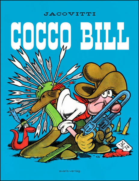 Erstmals erschien der friedliebende Westernheld, der seine Gegner eher durch witzige Wortgefechte als mit rauchenden Colts zur Strecke bringt, im Jahre 1957 in der Publikation Il Vittorioso. Seitdem ist er aus keinem italienischen Comicmagazin mehr wegzudenken. Insgesamt schuf der italienische Cartoonist Benito Jacovitti mehr als 2000 unglaublich detaillierte Cocco Bill-Seiten in seiner ureigenen Technik – jede Linie seiner Zeichnungen besteht aus vielen, hauchdünnen Federstrichen.
